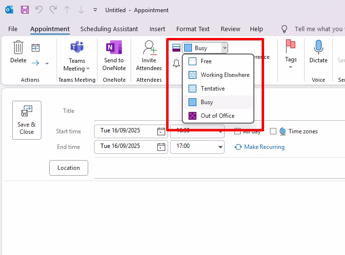 Block your calendar for focused work and mark it as “Busy”. If you are using Microsoft Outlook and Teams, when you set the status as “Busy” in your Outlook calendar, it will show “Busy” on your Teams.